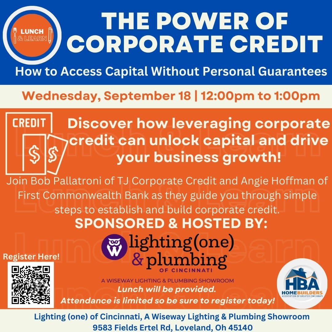 Join us Wednesday, September 18th at the Wiseway Supply showroom from 12-1pm. Learn valuable information on building corporate credit and gaining access to capital you need, when you need it!