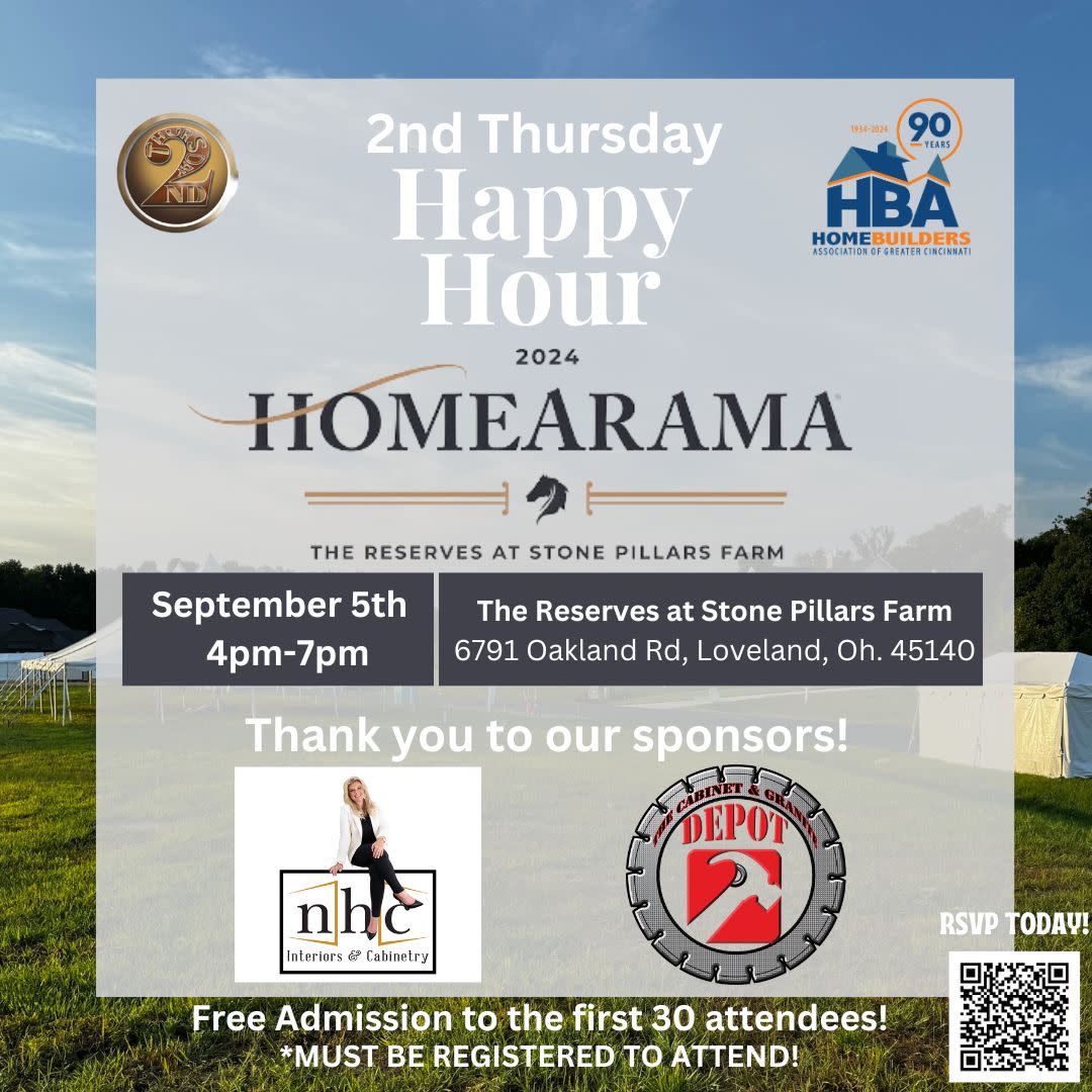 Join us at HOMEARAMA on Thursday September 5th for this month's Happy Hour! The first 30 attendees are free, additional attendees will be $10 each. You must be registered to attend this event, register TODAY!